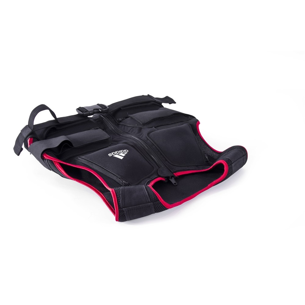 Adidas 10Kg súlymellény zipzárral, állítható súlyokkal: A súlymellény maximális súlya 10kg lehet, melyen változtathatunk, a súlyok eltávolíthatóak. A mellény zizárral és kapcsos zárral is el van látva, a mximális testreállíthatóság érdekében. Belső anyaga puha, így közvetlen érintkezhet a bőrrel, nem irritálja a súrlódás a bőrt.