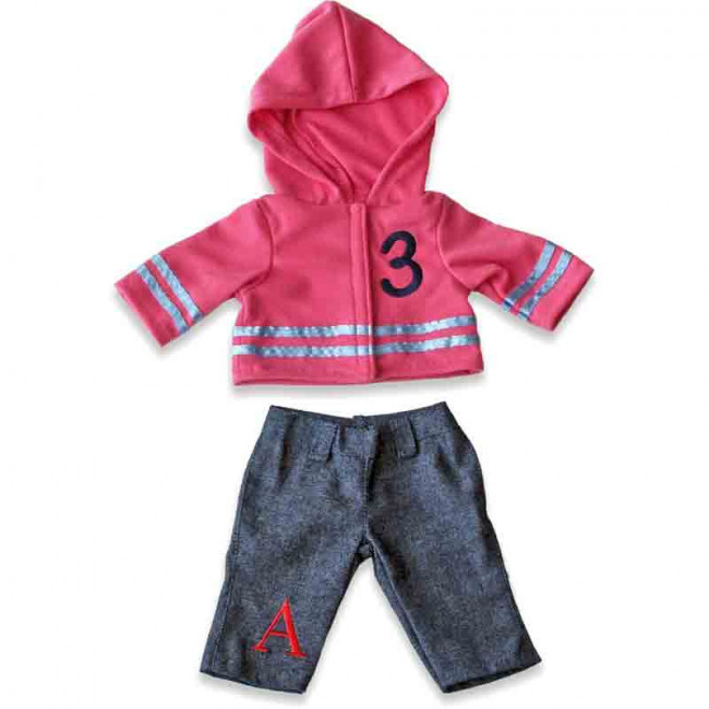 A vagány kapucnis farmer szett, fiú és lánybabák ruhatárában is szerepelhet.