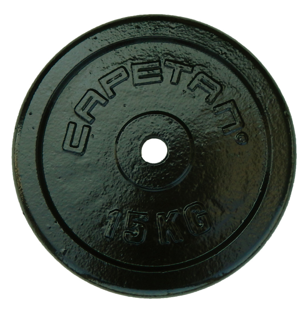 Capetan® 15kg acél súlytárcsa kalapácslakk felülettel 31mm lukátmérővel: Az ár 1db-ra vonatkozik. A súlyzótárcsa felületének kialakítása sorja mentes, a kalapácslakk festés esztétikus felületet biztosít. A 30mm átmérőjű súlyzórudakhoz való kialakítású.