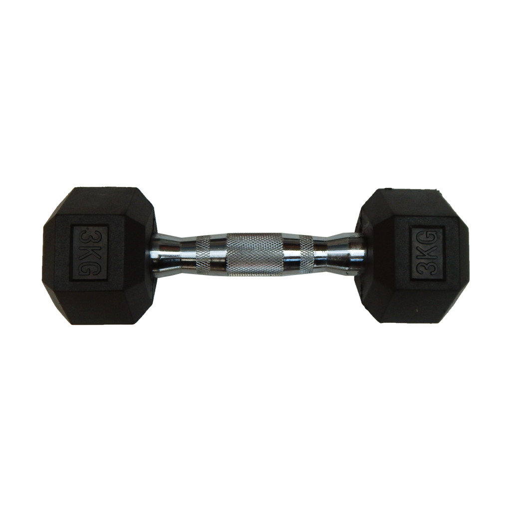 Capetan® Professional Line 3kg Hex Egykezes edzőtermi súlyzó gumírozott fejvégekkel, chromozott markolattal - Hexagon gumírozott készisúlyzó:
