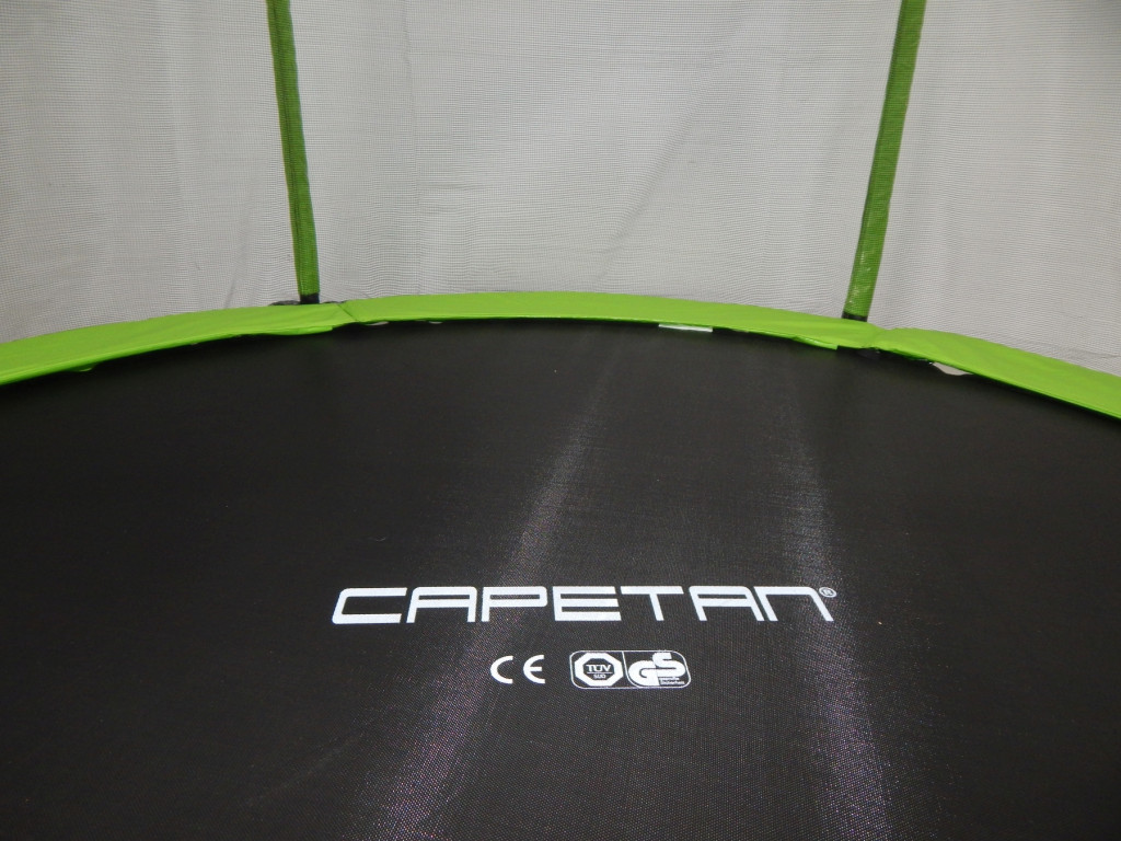 Capetan® Selector Lime 427cm védőhálós trambulin földig érő hálótartó oszlopokkal: . külön váz rögzítő T elemmel megerősített szerkezetű trambulin extra magas védőhálóval, vastag szivaccsal, földig érő védőhálótartó oszlopokkal