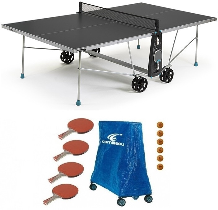 Cornilleau 100X Outdoor SZÜRKE kültéri időjárásálló pingpong asztal családi komplett kiegészítő felszerelés csomaggal - Ingyenes házhozszállítással: