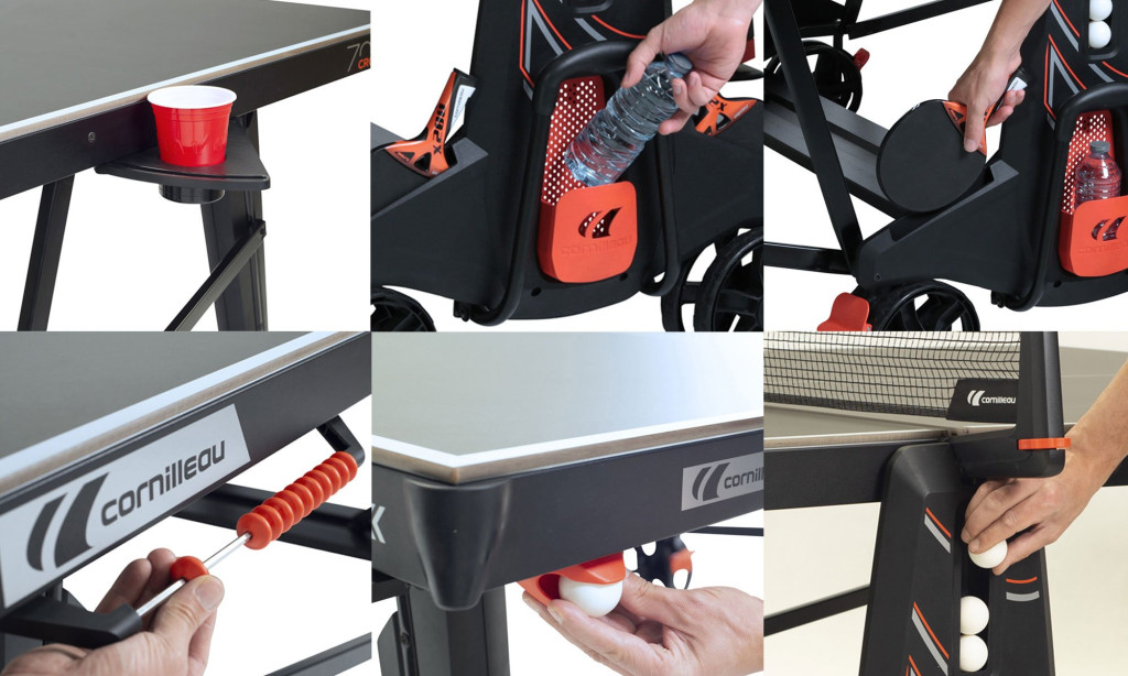 - A 600X asztal megannyi tárolóval rendelkezik. Az asztal oldalán található tárolóba teheted a zsebedben lapuló de a játék közben szükségtelen kütyüket, az ütő és labdatartóban árolhatod az ütőket és labdákat. Sőt az asztal rendelkezik kihajtható italtartókkal is, ide rakhatod a frissítődet.