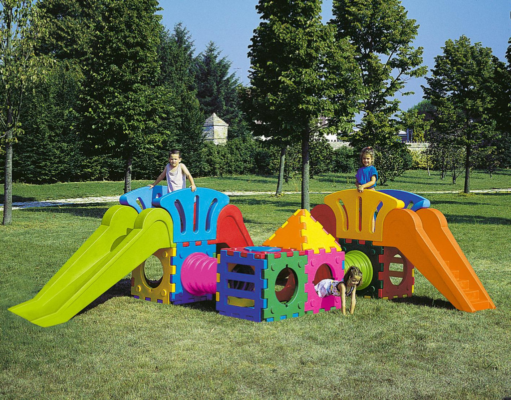 Egy szimmetrikus komplex létesítmény. Két toronnyal rendelkezik, melyből csúszdák indulnak ki. Középen két kocka van, ahova a torony aljából induló alagutak érkeznek meg. A középsők kockán található létra elem segítségével a gyermekek felmászhatnak a kocka tetejére. A tornyoknak és a létesítmény szimmetrikus voltának hála, ez az eszköz tökéletesen használható váras játékokra vagy bármely olyan játékra, ahol két csapat vetélkedik egymással (két csapat - két torony). Ebben a létesítményben a gyermekek létrákon mászhatnak, lépcsőkön mehetnek fel és le, csúszdázhatnak, és alagutakban bújkálhatnak. Ezek mind mind fejlesztik a gyermekek ügyességét, kreativitását, logikai érzékét és gyorsaságát.