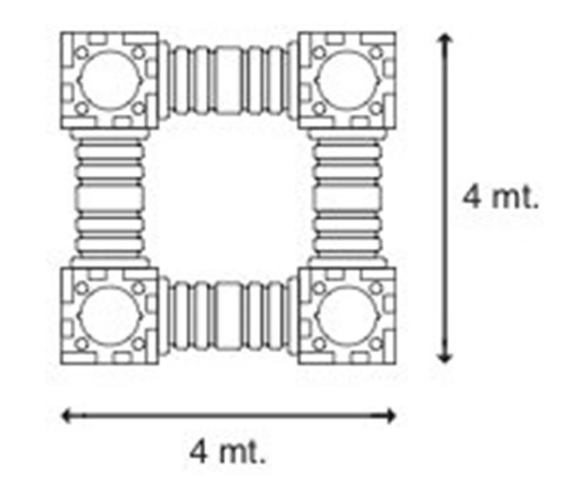 Egy egyszerű szimmetrikus mászrendszer, de mégis nagyon sok célra felhasználható. A létesítmény neve az olasz "quattro" szóból származik, mely négyet jelent. A létesítmény maga egy négyzet, melynek mind a négy csúcsában egy egy kocka áll. A kockák lyukasak, azaz a gyermekek átmászhatnak rajtuk. A kockákat alagutak kötik össze, ezek jelentik a négyzet négy oldalát. Fogócskára az alagútban. Az alagutak átmérője 40 cm.