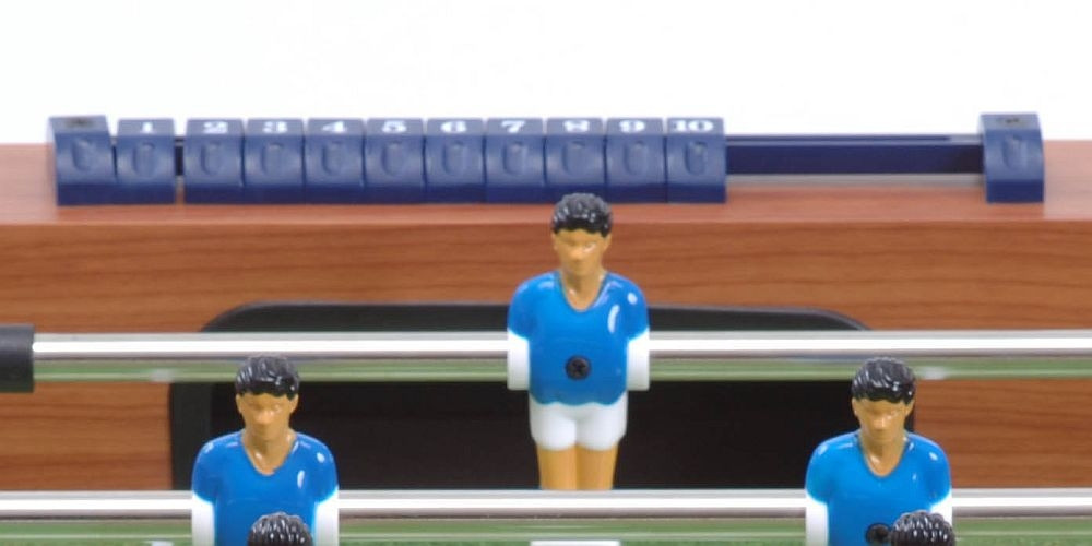A kapus 360°-ban elforog. A játékosok egyenként csavarral rögzíthetőek a rudazatra. Élethű színes kiképzésűek. Az asztalhoz 2db fekete pettyes labda tartozik.