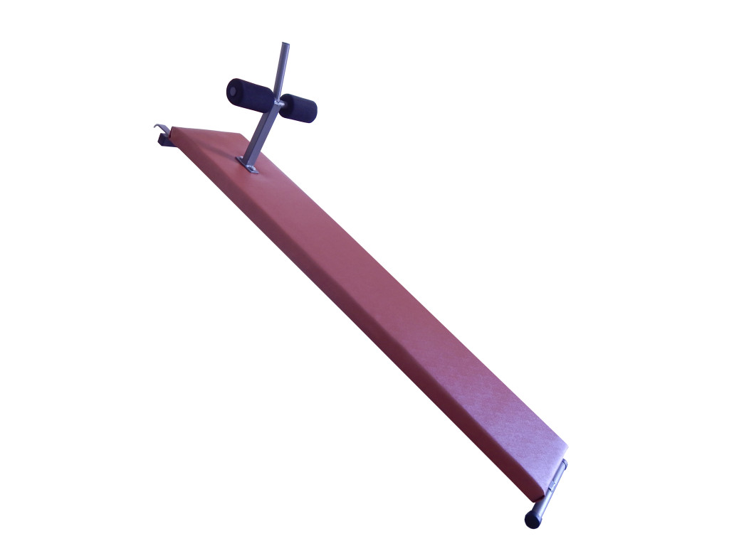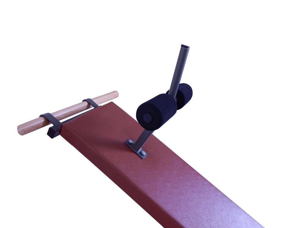 A bordásfalra tetszőlegesen több magasságban beakasztható masszív összehajtható haspad, műbőr jellegű vörösesbarna barna kárpittal, A kép imázskép a szivacsozott lábtartó a felakasztótól cipőméretnyi távolságra becsavarozható a fekvőfelületbe ha fordítva akarja használni a padot a bordásfalba kapaszkodva akkor el tudja távolítani a lábtartót és nagyobb fekvőfelülettel rendelkezik.