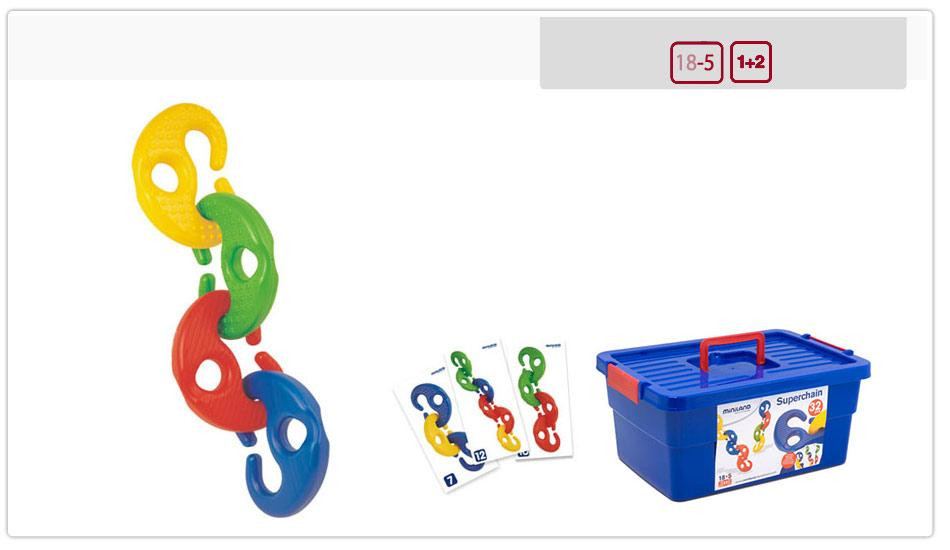 Nagy és könnyen a pici gyermekkézzel is megragadható elemekből áll ez az illesztő játék, a láncszemek összekapcsolásával térbeli alakzat jön létre.Segít kifejleszteni a térbeli fogalmakat és érzékelést, illetve a színek és textúrák elhatárolását.