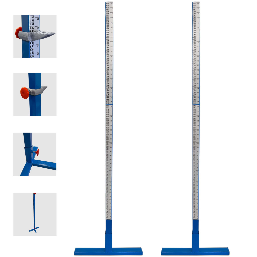 Magasugró állvány pár, acél, magasugró mérce 30-200cm között állítható rúdtartóval Termékleírása