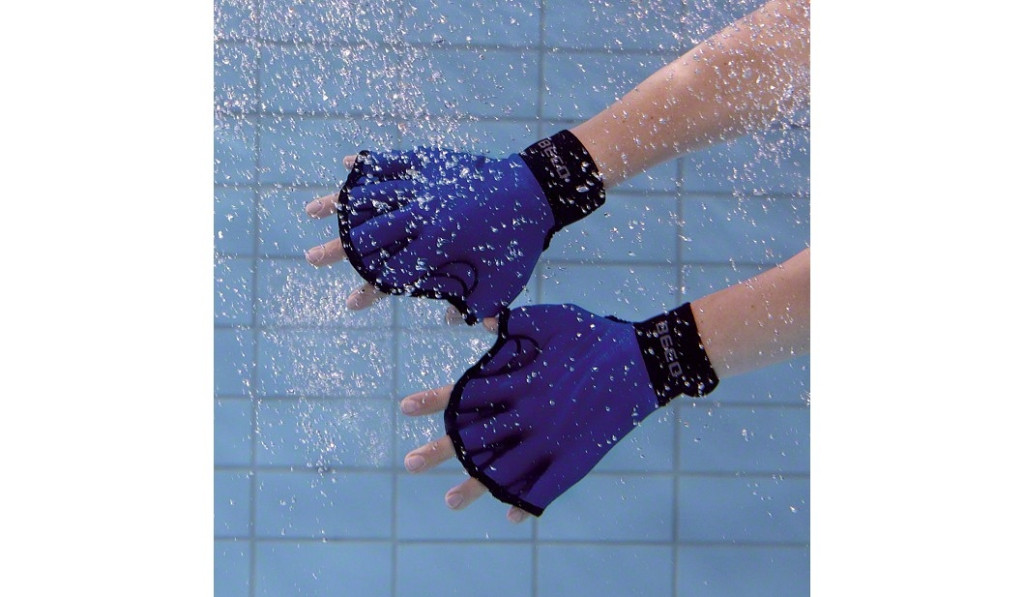 Neopren aquafitnes kesztyű (békakesztyű) L méret, nyitott ujjvég, a jobb vízérzet és komfort érdekében. Vízisúlyzó is kézbe vehető a viselése közben