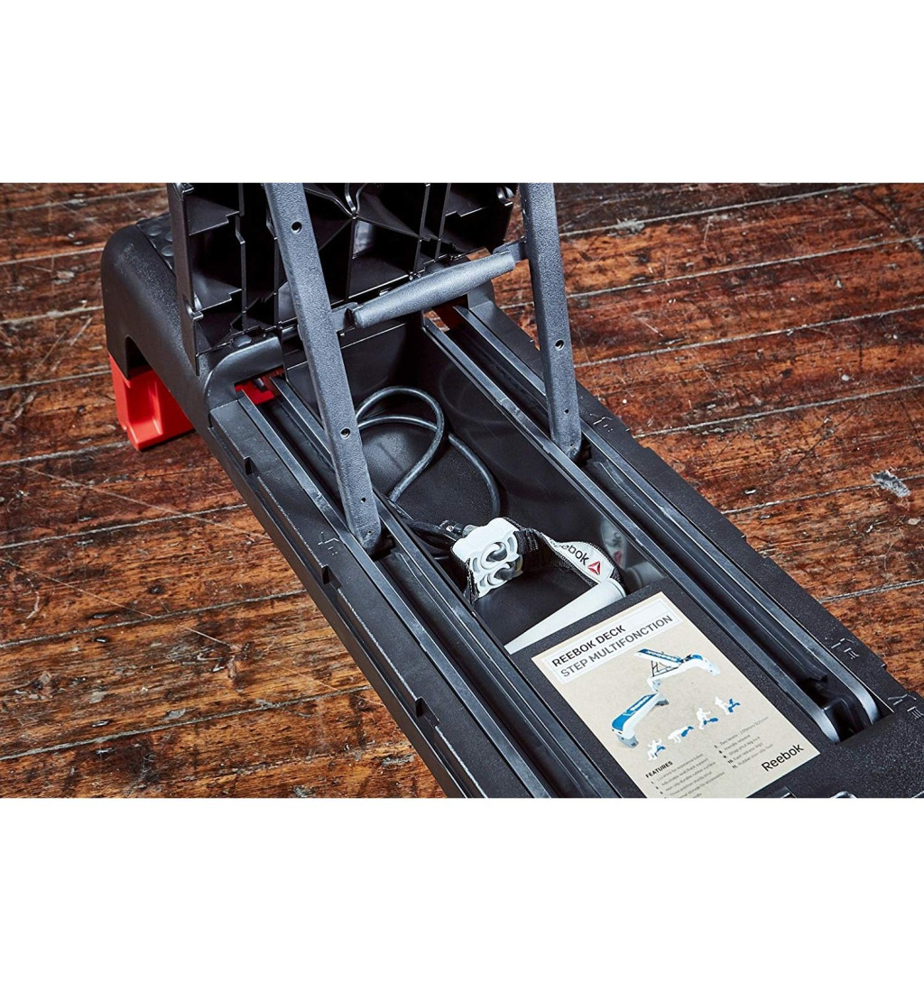 A sztep pad lapja emelhető, fekvő gyakorlatok végezhetőek rajta. Kompakt fekpadnak tekinthető az eszköz. A Deckhez tartozik 2db elasztikus tube, mellyel kiegészítő gyakorlatokat végezhetünk rajta (lásd képek közt). Magassága 20cm és 35cm között állítható. A háttámla dőlésszöge 3 pozícióban fixálható.