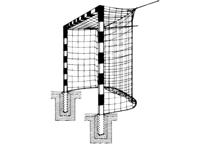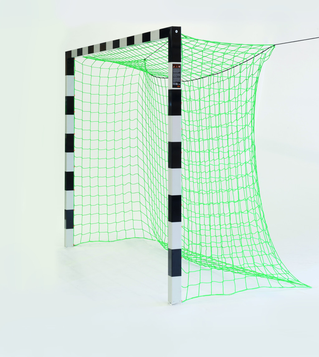 Rögzített kézilabda kapu hálótartó nélkül (csarnokfalra,labdafogóra rögzítendő háló)