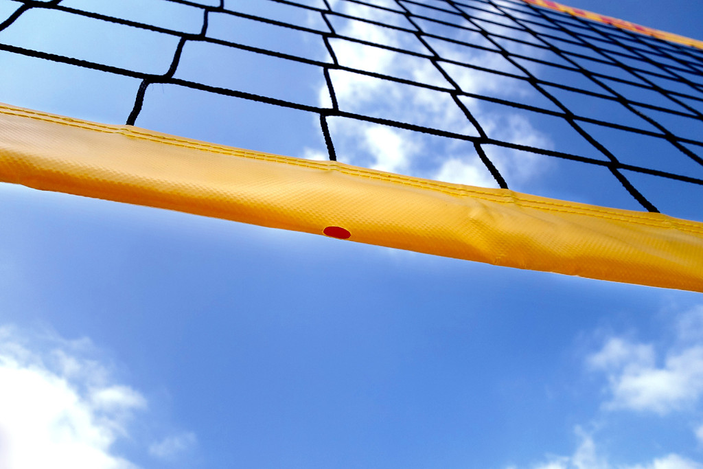 Funtec Strandröplabda versenyháló 8,5mx1m, rögzítő varrattal antennatokhoz, 10,4m hosszú kevlárral erősített textil rögzítő zsinórral, esővíz elvezető réssel a háló allján, külön alsó rögzítőpont az extra stabilitáshoz, 3mm csomomentes háló anyag.