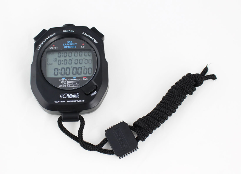 Stopperóra digtális frequencia méréssel 10h max mérésidővel 1/100 second pontosság vízálló uszodai használatra alkalmas, köridő részidő mérés