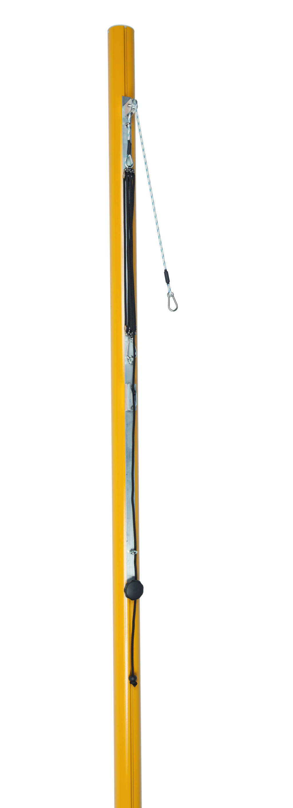Alumínium strandröplabda hálótartó, sárga, 3000 mm hosszú oszlop,, talahüvely külön rendelendő