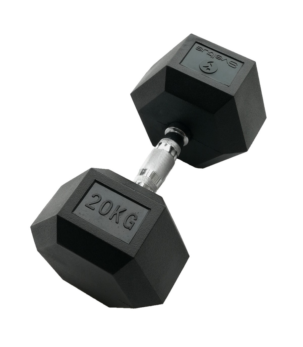 Sveltus hex egykezes gumírozott kézisúlyzó 20 kg 1 db, gumírozott fejvéggel