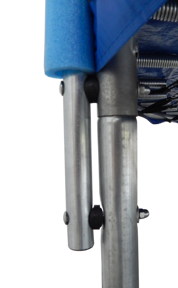 A trambulin rugóvédő szivacsa a keret felett megerősített, a teljes szélességben mért 15mm vastagságon felül a keret fölé eső részen + 6mm vastagsággal vastagabb, így ott a teljes vastagság 21mm.
