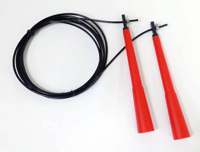 Kábeles kivitelű ugrálókötél, műanyag nyéllel, 2,8m állítható hossz , 2,8mm fémszálbetététes pvc kábel, könnyen állítható, gyorsan forog. A kép imázskép az aktuális gyártástól függően a nyél színe lehet fekete, vagy piros, a kábel fekete.